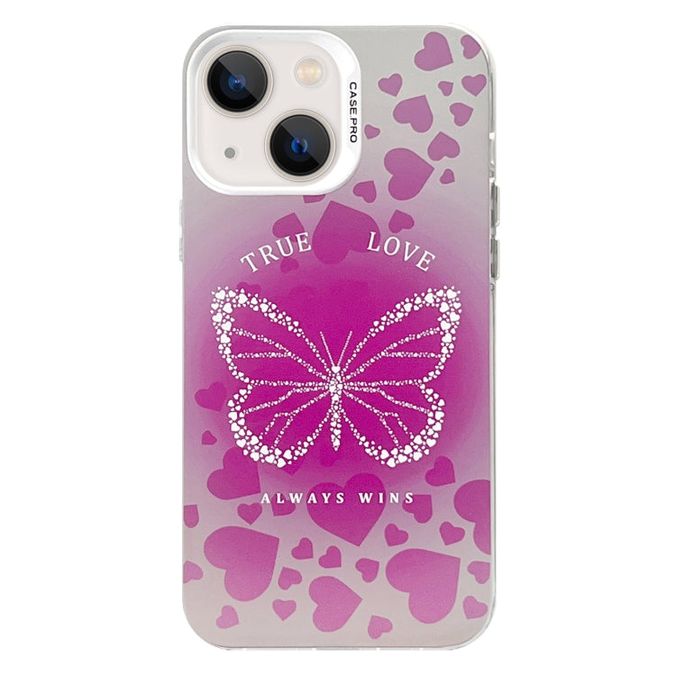 Funda Protectora para iPhone 14 Serie Plateada Galvanizada PC con Diseño Mariposa Rosa