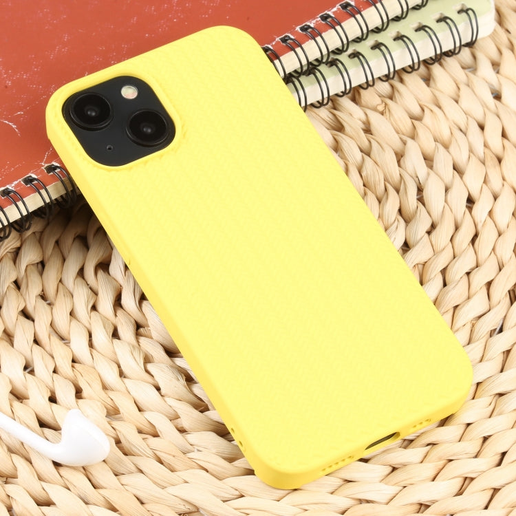 Funda de Teléfono Silicona para iPhone 14 con Textura de Tejido (Amarillo)