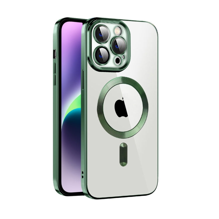 Funda para teléfono iPhone 14 Cd Textura Plating TPU Magsafe con Película de Lente (Verde Oscuro)