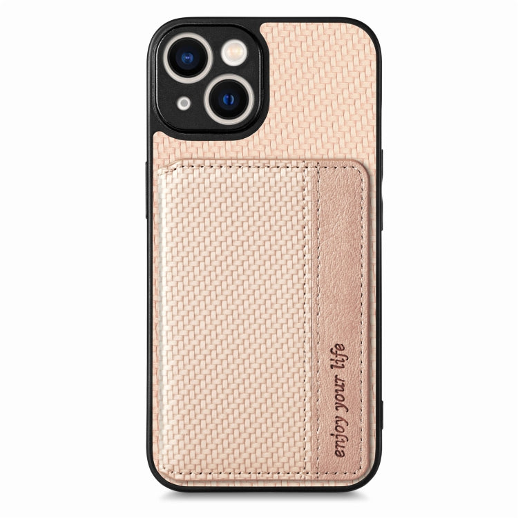 Caja de Teléfono para iPhone 14 con Bolsa de Tarjeta Magnética de Fibra de Carbono (Marrón)