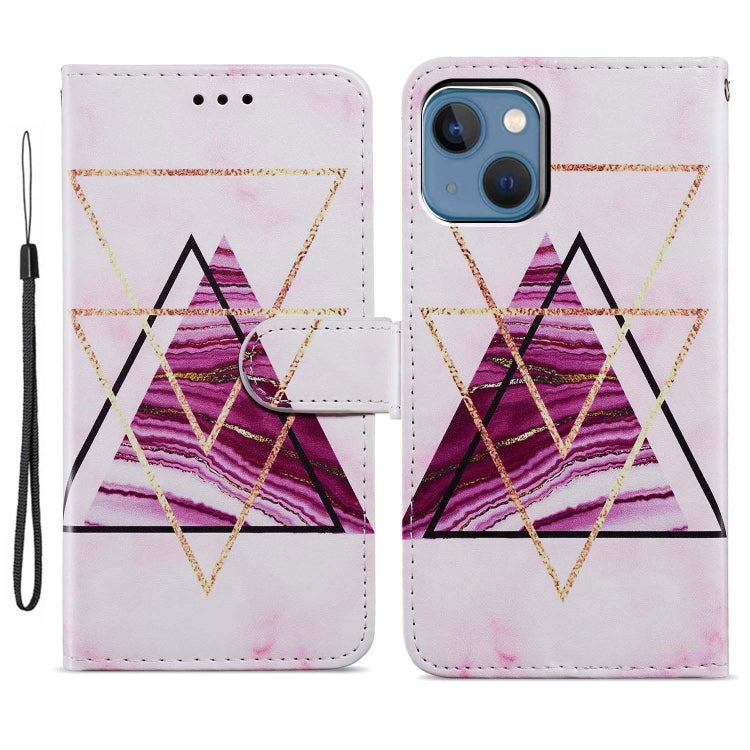 Estuche para Teléfono iPhone 15 Plus Cuero con Patrón de Mármol Pintado (Rosa Púrpura)