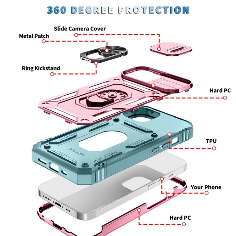 Estuche para Teléfono iPhone 15 Plus con Soporte Deslizante Camshield (Verde + Rosa)