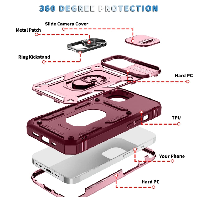 Estuche para Teléfono iPhone 15 Plus con Soporte Deslizante Camshield (Rosa + Rojo Rosa)