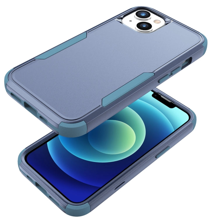 Funda para Teléfono iPhone 15 Plus Commuter TPU y PC a Prueba de Golpes (Azul Real + Verde Gris)
