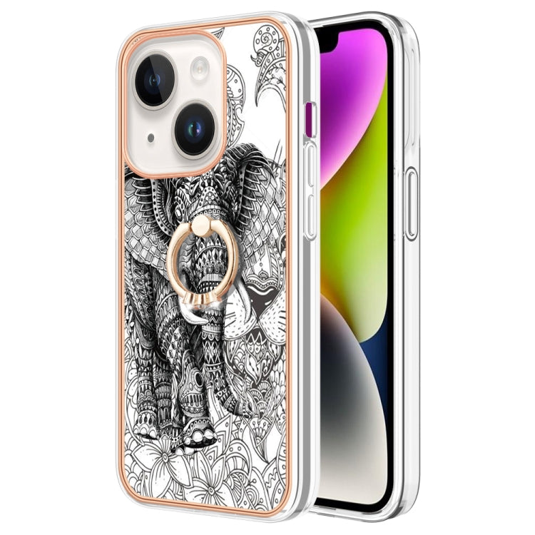 Funda para iPhone 15 Plus Galvanoplastia Imd Doble Cara con Soporte para Anillo (Totem Elephant)