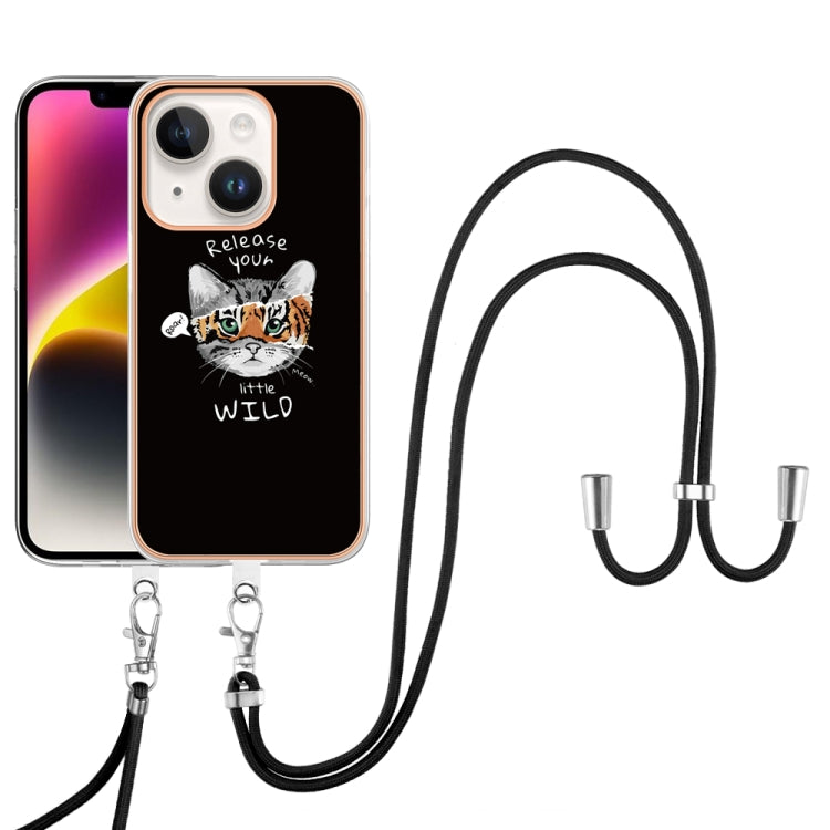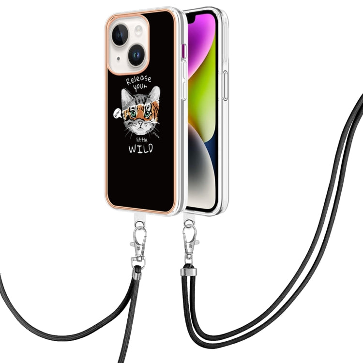 Estuche para Teléfono iPhone 15 Plus Imd Doble Cara con Galvanoplastia y Cordón (Leopardo)