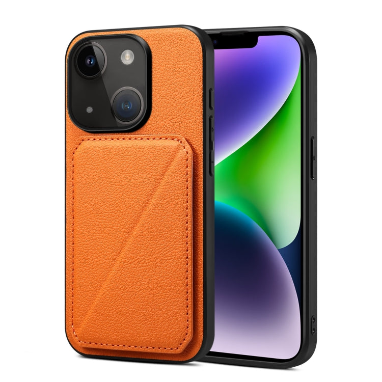 Funda Trasera para iPhone 15 Plus Piel de Becerro de Imitación con Soporte (Naranja)