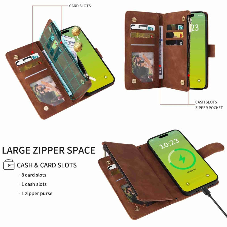 Funda Cruzada de Cuero para iPhone 15 Plus con Cremallera y Ranura para Tarjetas (Marrón)