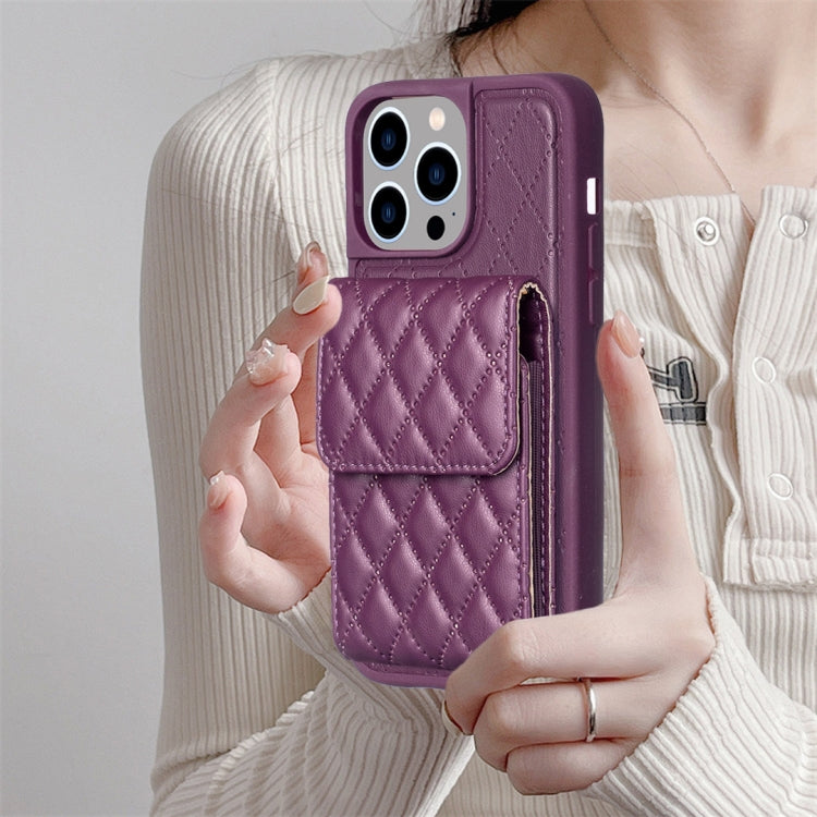 Funda para iPhone 15 Pro Max Vertical Wallet Rhombic de Cuero (Púrpura Oscuro)