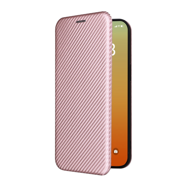 Funda de Cuero para iPhone 15 Pro Max Carbon Fiber Texture Flip (Rosa)