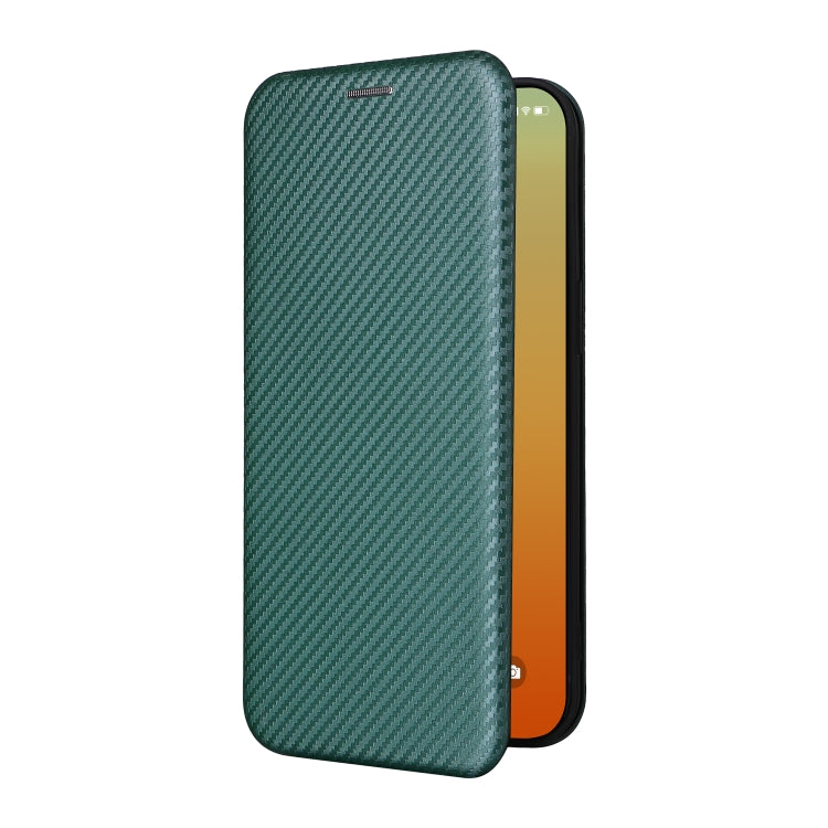 Funda para iPhone 15 Pro Max Carbon Fiber Texture Flip de Cuero (Verde)