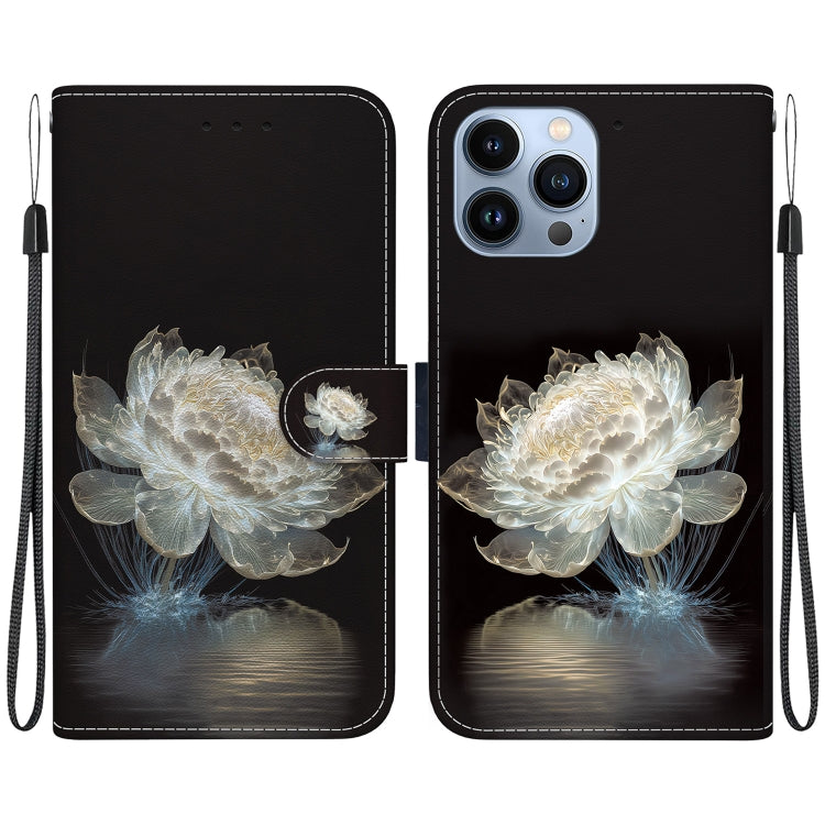 Estuche para Teléfono iPhone 15 Pro Max Cuero Dibujo Coloreado Textura de Cristal (Peonía de Cristal)
