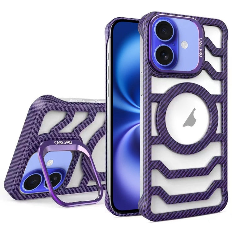 Estuche para Teléfono Magsafe Soporte Protección Lente Fibra de Carbono iPhone 16 Plus (Morado)