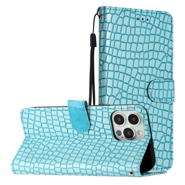 Funda de Piel con Tapa Horizontal Textura Cocodrilo para iPhone 16 Pro Max (Azul Claro)