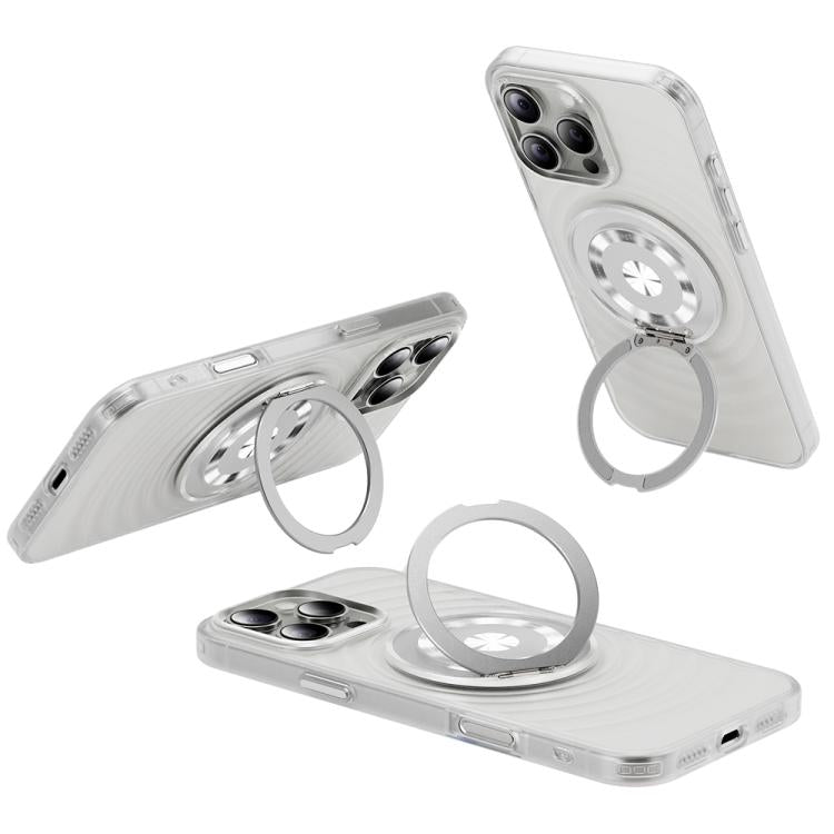 Funda para Teléfono iPhone 16 Pro Max con Soporte Magsafe y Diseño de Ondas (Transparente y Blanca)