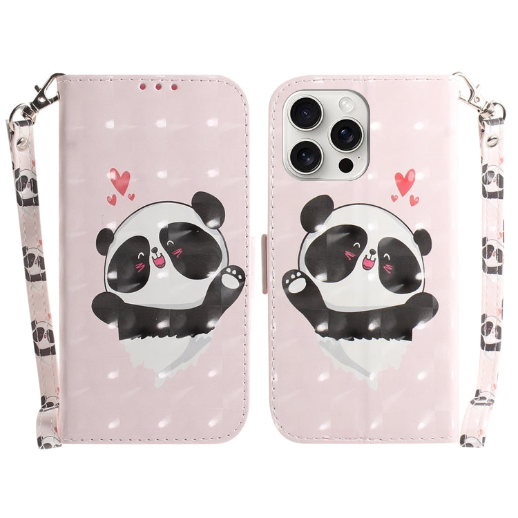 Funda de Teléfono iPhone 16 Pro Cuero con Tapa Horizontal 3D (Corazón Panda)