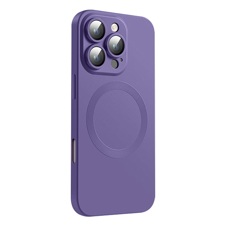 Funda de Silicona Líquida Magsafe para iPhone 16 Pro con Textura de Cd (Morado Oscuro)
