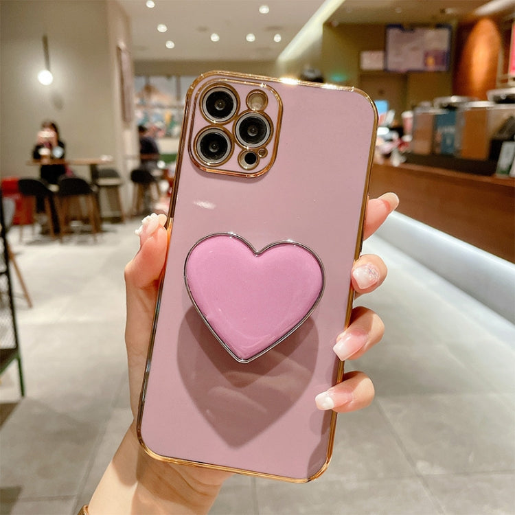 Funda TPU con Soporte Corazón de Amor y Galvanoplastia para iPhone 16 Pro (Morado)