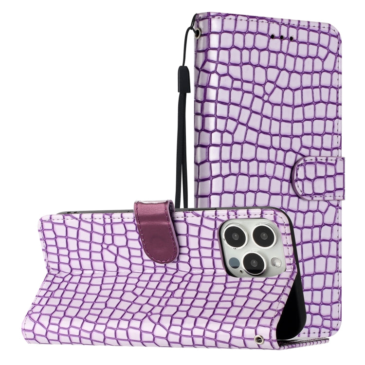 Funda de Piel con Tapa Horizontal Textura de Cocodrilo para iPhone 16 Pro (Morado)