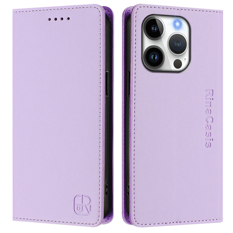Funda de Cuero Rc01 para iPhone 16 Pro con Doble Pliegue y Succión Magnética (Morado Claro)
