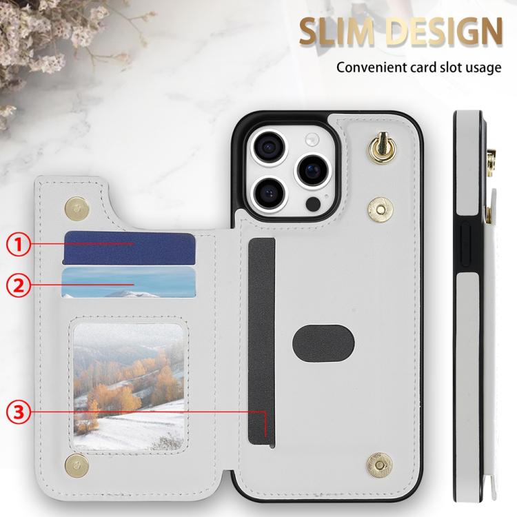 Estuche para Teléfono iPhone 16 Pro Ranuras para Tarjetas Hebilla Doble Rombal Cordón (Blanco)