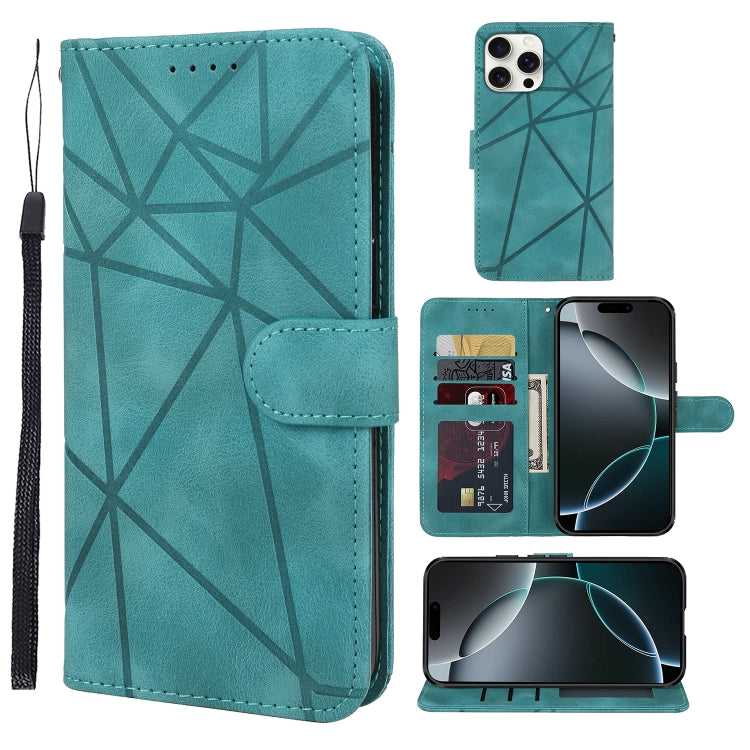 Funda de Cuero iPhone 16 Pro Líneas Geométricas Tacto Sedoso (Verde)