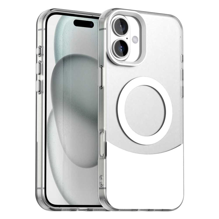 Funda híbrida TPU y PC con bloqueo de color para iPhone 16 con imán Magsafe (Blanco)