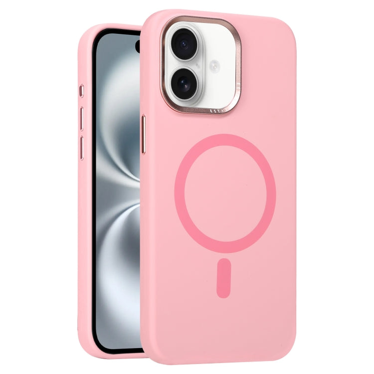 Funda de Silicona Líquida con Marco de Metal y Magsafe para iPhone 16 (Rosa)