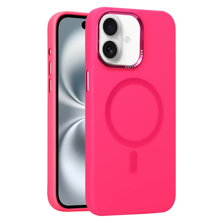 Funda de Silicona Líquida con Marco de Lente de Metal Magsafe para iPhone 16 (Rosa Rojo)