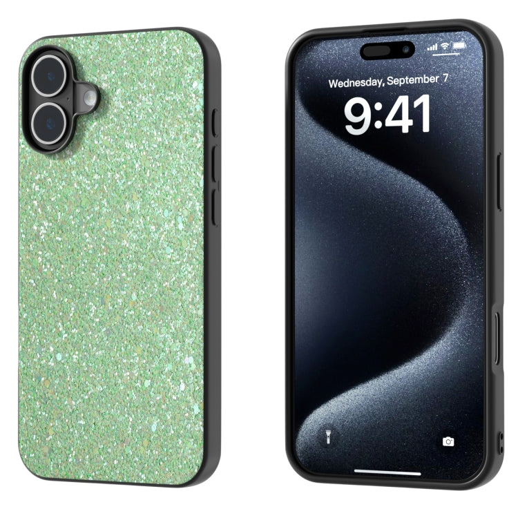 Funda para iPhone 16 con Marco Negro y Purpurina de Colores (Verde Claro)