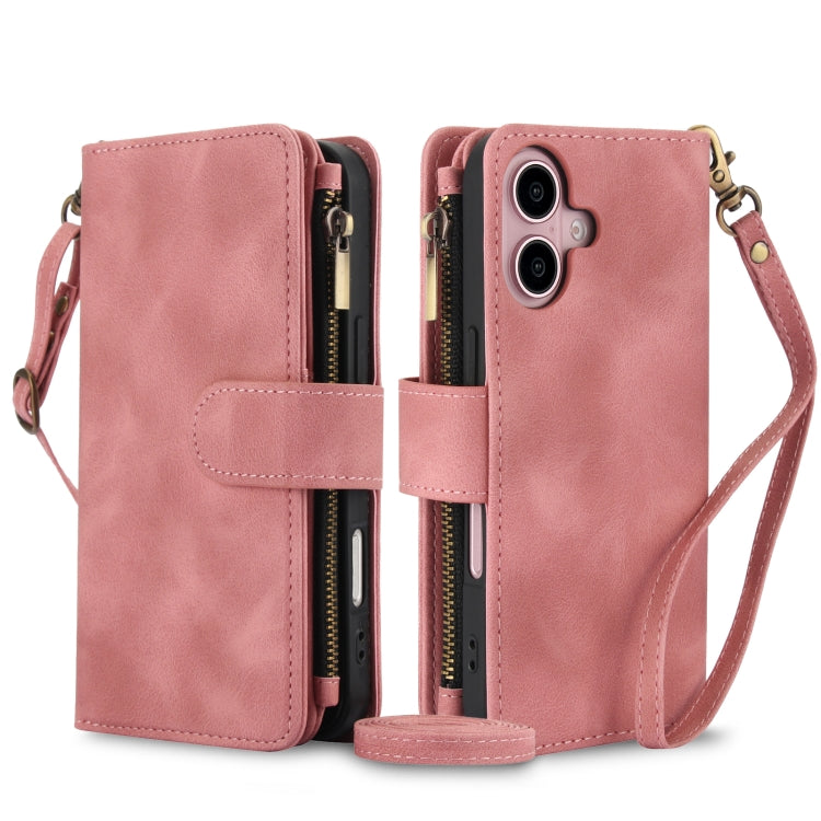 Funda de Cuero Rfid con Cremallera para iPhone 16 Dream con 9 Tarjetas y Cordón (Oro Rosa)