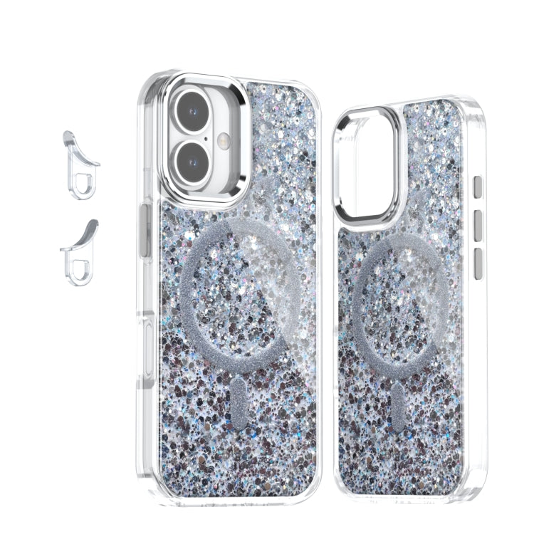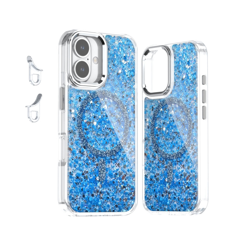 Funda de Teléfono TPU Magnética Magsafe con Purpurina Epoxi para iPhone 16 (Azul)
