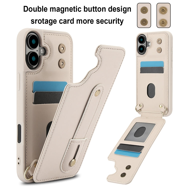 Funda Tipo Cartera iPhone 16 con Tapa Vertical y Correa para Muñeca con Cordón Largo (Blanca)