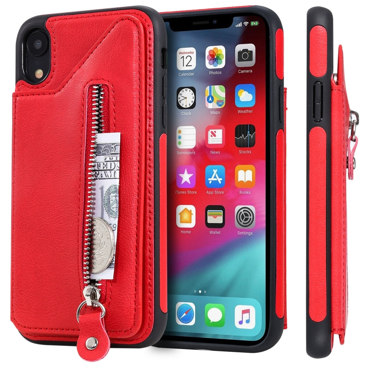Funda Protectora para iPhone Xr Doble Hebilla Cremallera a Prueba de Golpes (Rojo)