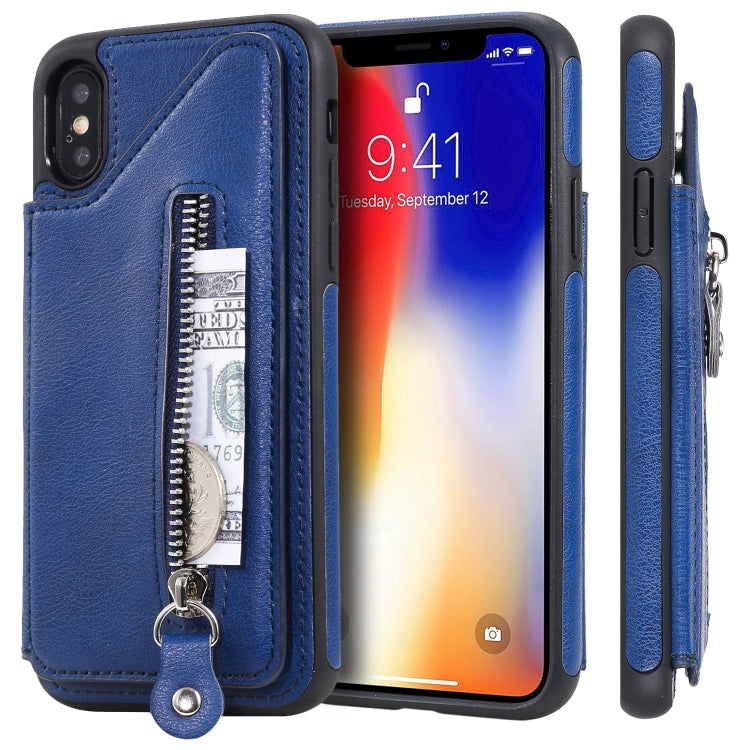 Funda Protectora para iPhone Xs Doble Hebilla Cremallera a Prueba de Golpes (Azul)