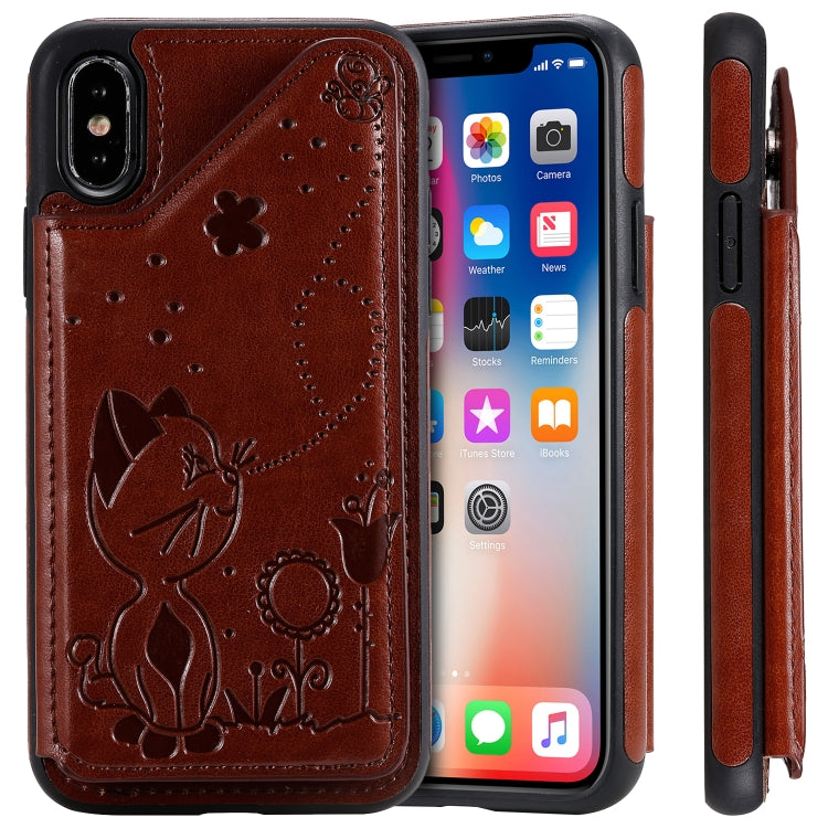 Funda Protectora iPhone X Patrón Abeja y Gato Ranuras Tarjetas Marco Fotos (Marrón)