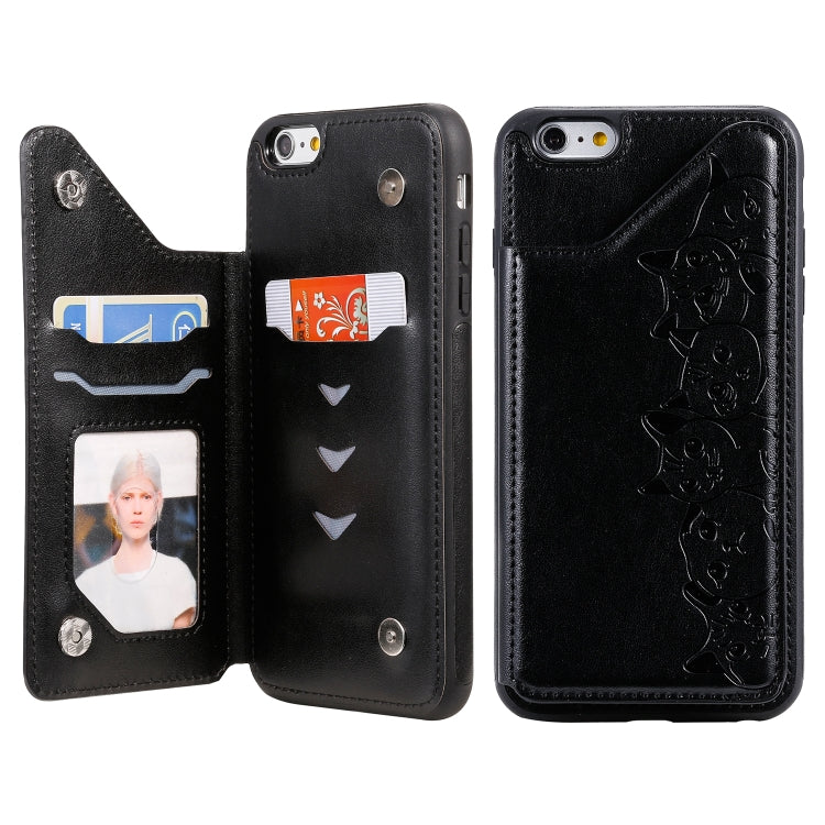 Funda para iPhone 6 Plus Seis Gatos Estampado con Soporte Ranuras y Marco de Fotos (Negro)