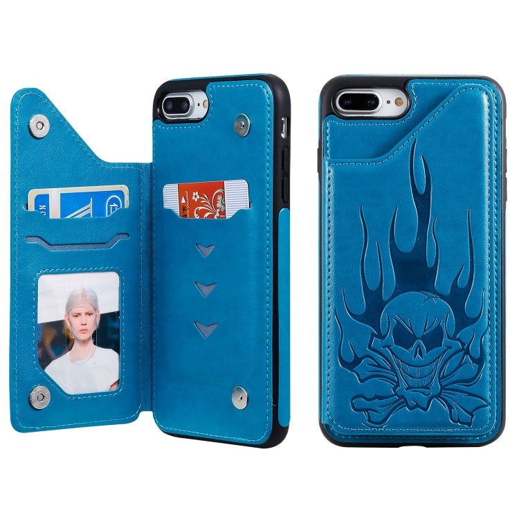 Estuche Protector para iPhone 8 Plus / 7 Plus Skull Head con Soporte y Ranuras para Tarjetas (Azul)