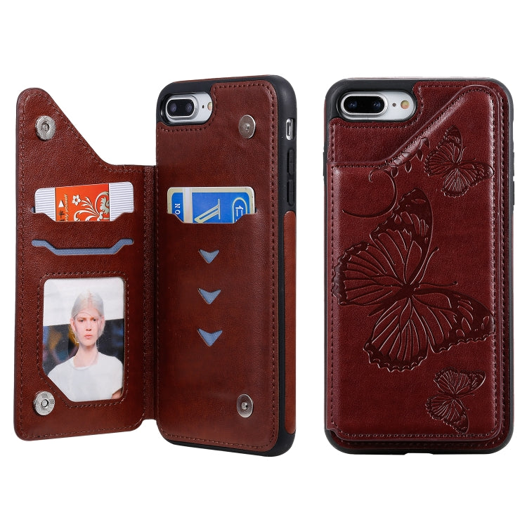 Funda Protectora iPhone 8 Plus y 7 Plus Patrón Mariposas Soporte Ranuras Tarjetas Marco Fotos (Marrón)