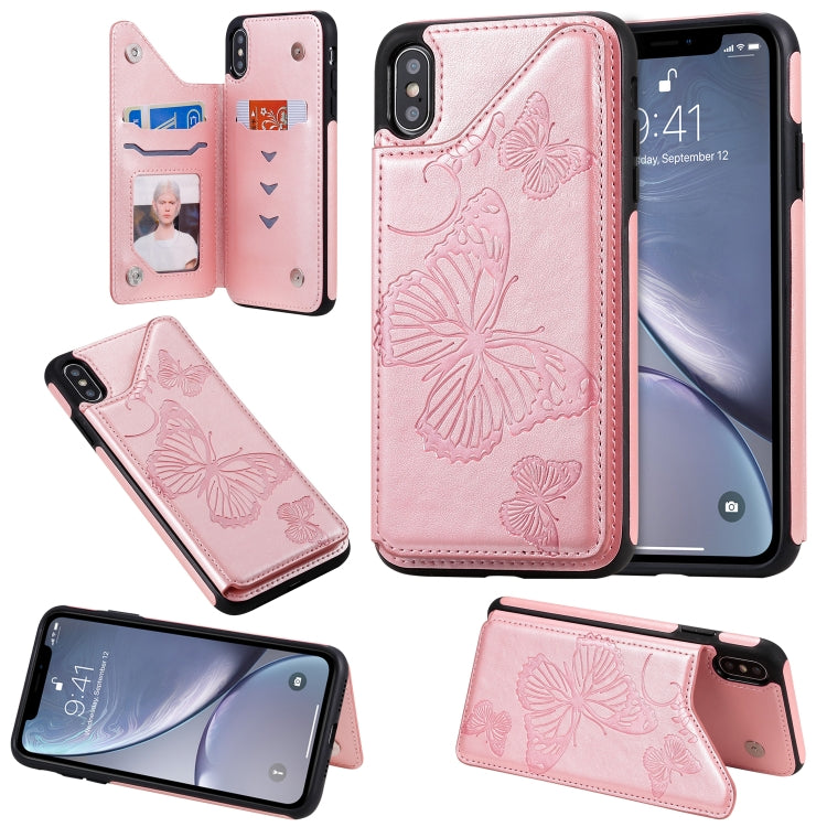 Estuche Protector iPhone Xs Max Patrón Mariposa Soporte Tarjetas Marco Fotos (Oro Rosa)