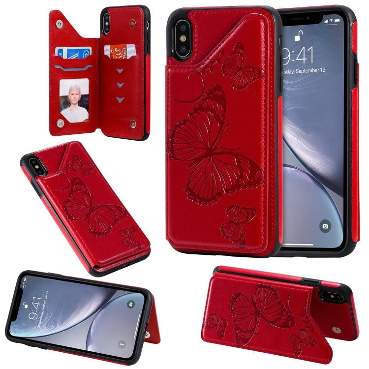 Funda Protectora para iPhone X y Xs con Estampado de Mariposas Soporte y Ranuras para Tarjetas (Rojo)