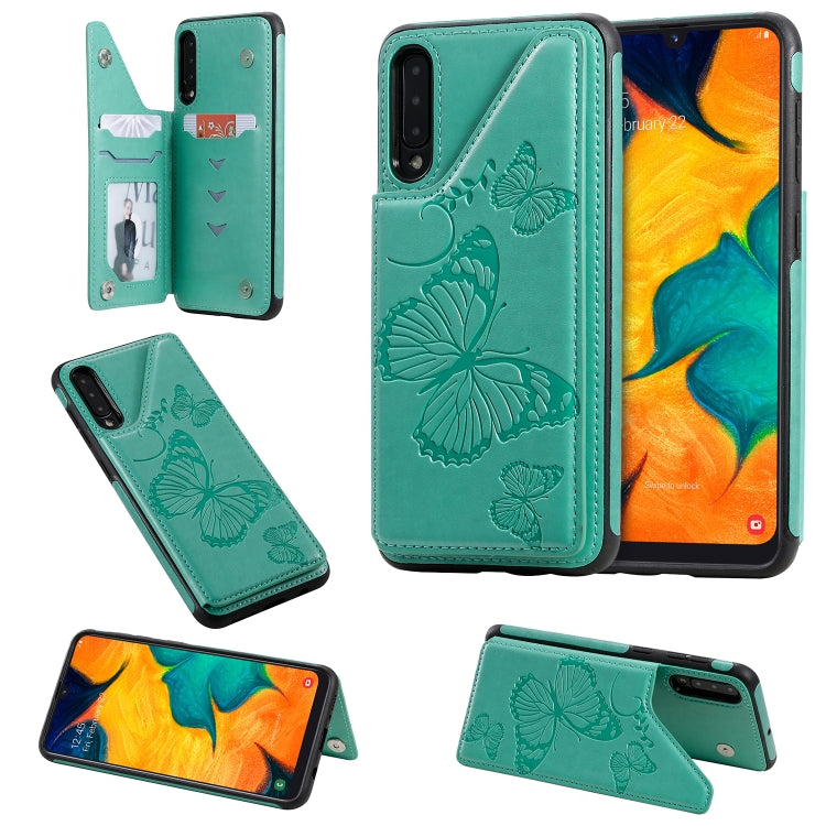 Funda Protectora Galaxy A50 con Estampado de Mariposas Soporte Ranuras y Marco de Fotos (Azul)