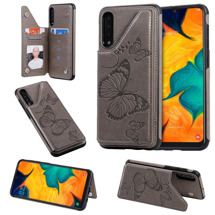 Funda Protectora Galaxy A50 Estampado Mariposa Soporte Ranuras Tarjetas Marco Fotos (Gris)