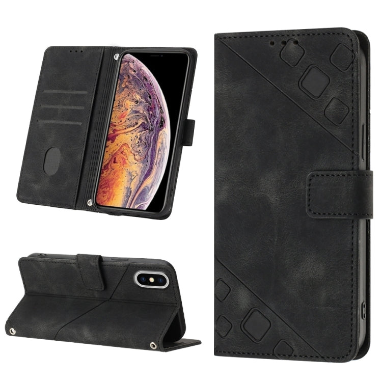Estuche para Teléfono iPhone Xs Max Skin-Feel Cuero en Relieve (Negro)
