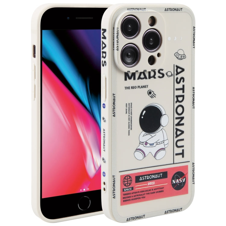 Funda de teléfono iPhone X / Xs Silicona borde recto Patrón Astronauta de Marte (Blanco)