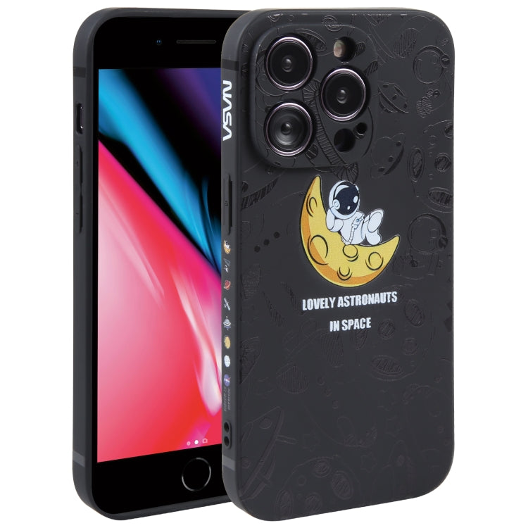 Funda de teléfono para iPhone Xs Max Patrón de Astronauta Borde Recto Silicona (Negro)