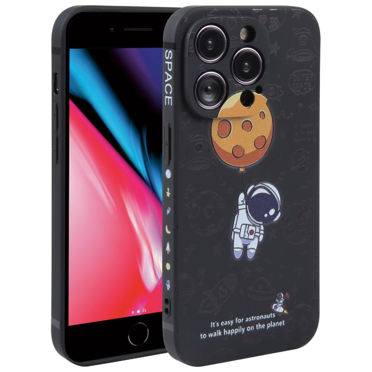 Funda de teléfono iPhone 6 / 6S silicona borde recto patrón astronauta (Negro)