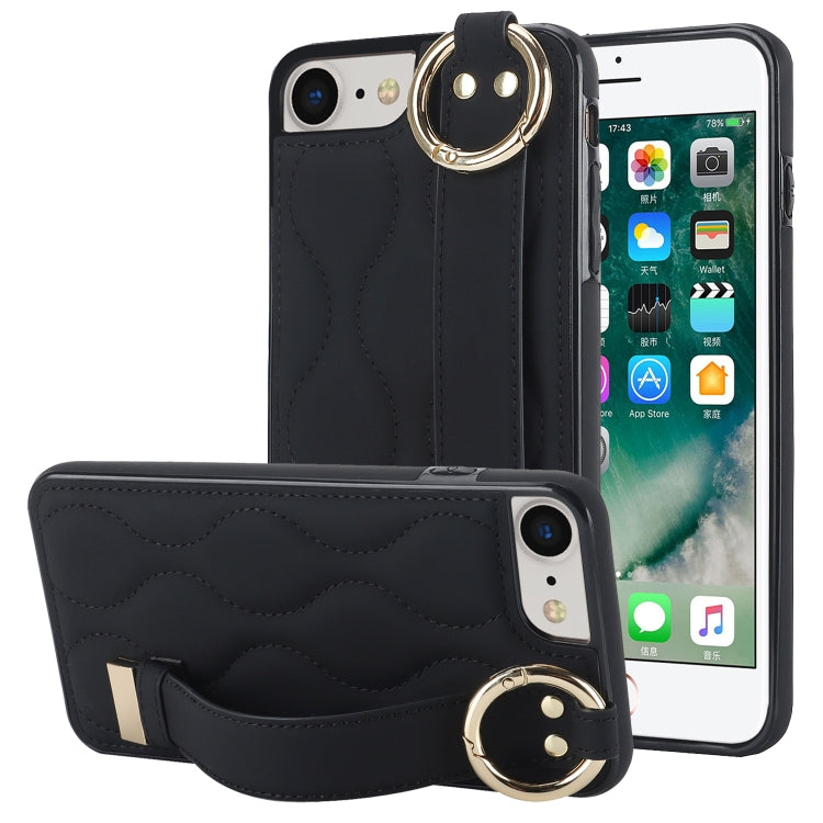 Funda para iPhone 7/8 Antideslizante de PU con Anillo y Muñequera (Negro)