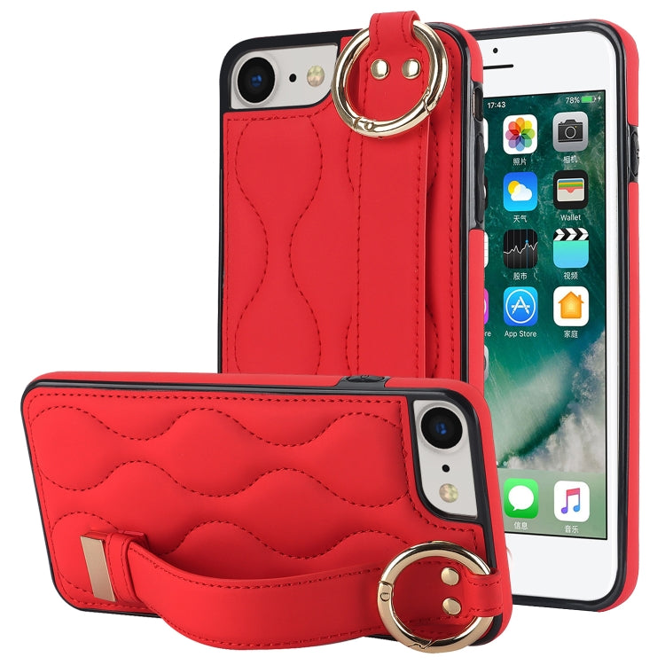Funda para iPhone 7 Antideslizante Cobertura Completa Anillo PU con Muñequera (Rojo)