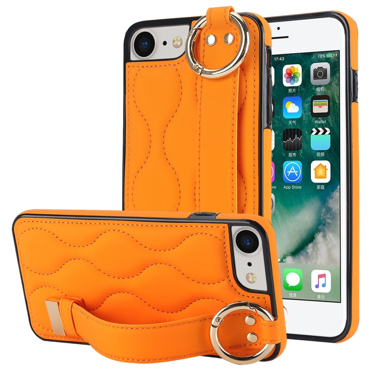 Funda para Teléfono iPhone 7 Antideslizante Cobertura Completa Anillo PU con Muñequera (Naranja)